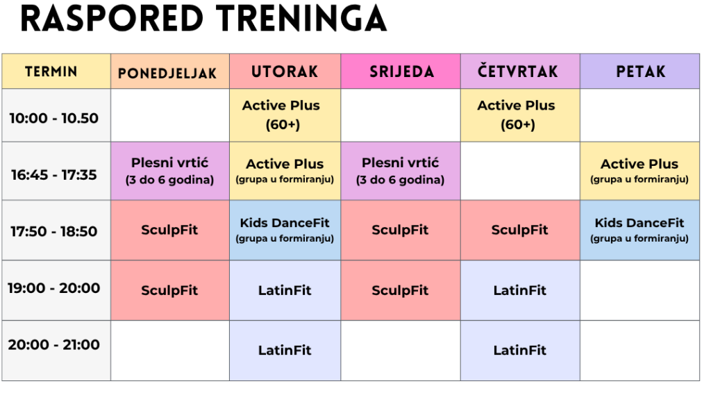 Termini su formirani prema inicijalnom interesu, a zbog velikog interesa grupe se brzo popunjavaju. S povećanjem broja polaznika uvodimo dodatne termine i prilagođavamo raspored vašim mogućnostima. Isprobajte besplatan probni trening i osigurajte svoje mjesto!